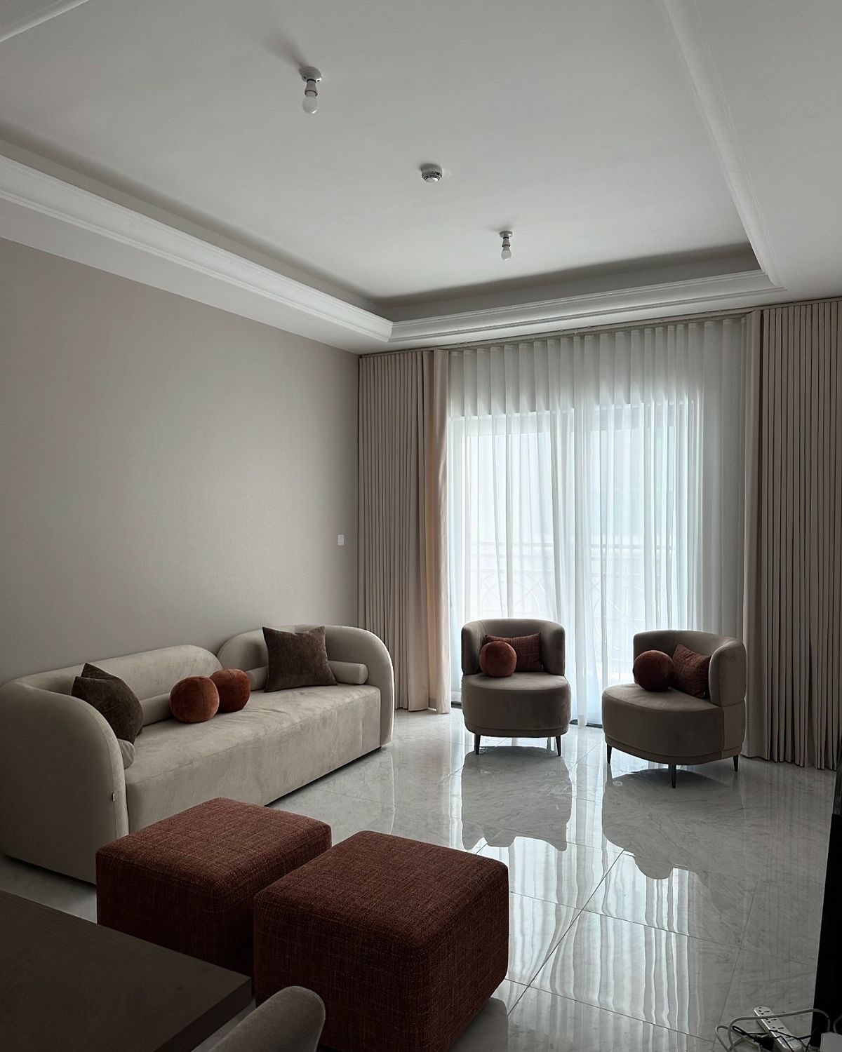 A comprehensive and flexible seating arrangement designed to maximize both comfort and capacity in your living area. This set features a spacious 5-seater sofa—typically configured as a 3-seater and two single chairs or a large L-shape—paired with two versatile puffys (ottomans). The puffys serve as multi-functional pieces that can be used as extra footrests, casual seating for guests, or even makeshift coffee tables. Upholstered in premium fabric with high-resiliency foam, this ensemble provides a plush, inviting atmosphere while its modular nature allows you to adapt the layout to suit your social gatherings and relaxation needs.