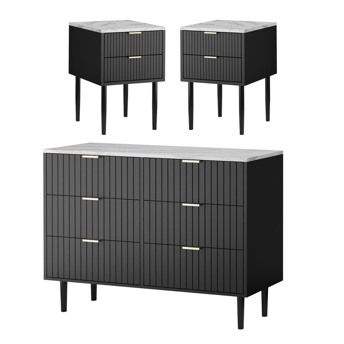 An elegant and functional dressing table set featuring matching side units for expanded storage and a cohesive look. Designed to streamline your morning routine, this set includes a high-quality mirror and ample space for beauty essentials, blending sophisticated luxury with practical organisation for any modern dressing area.